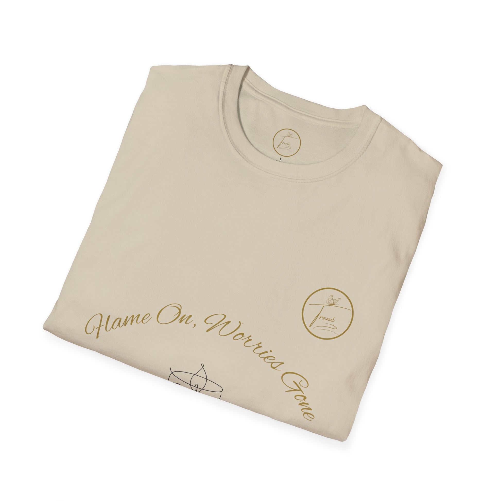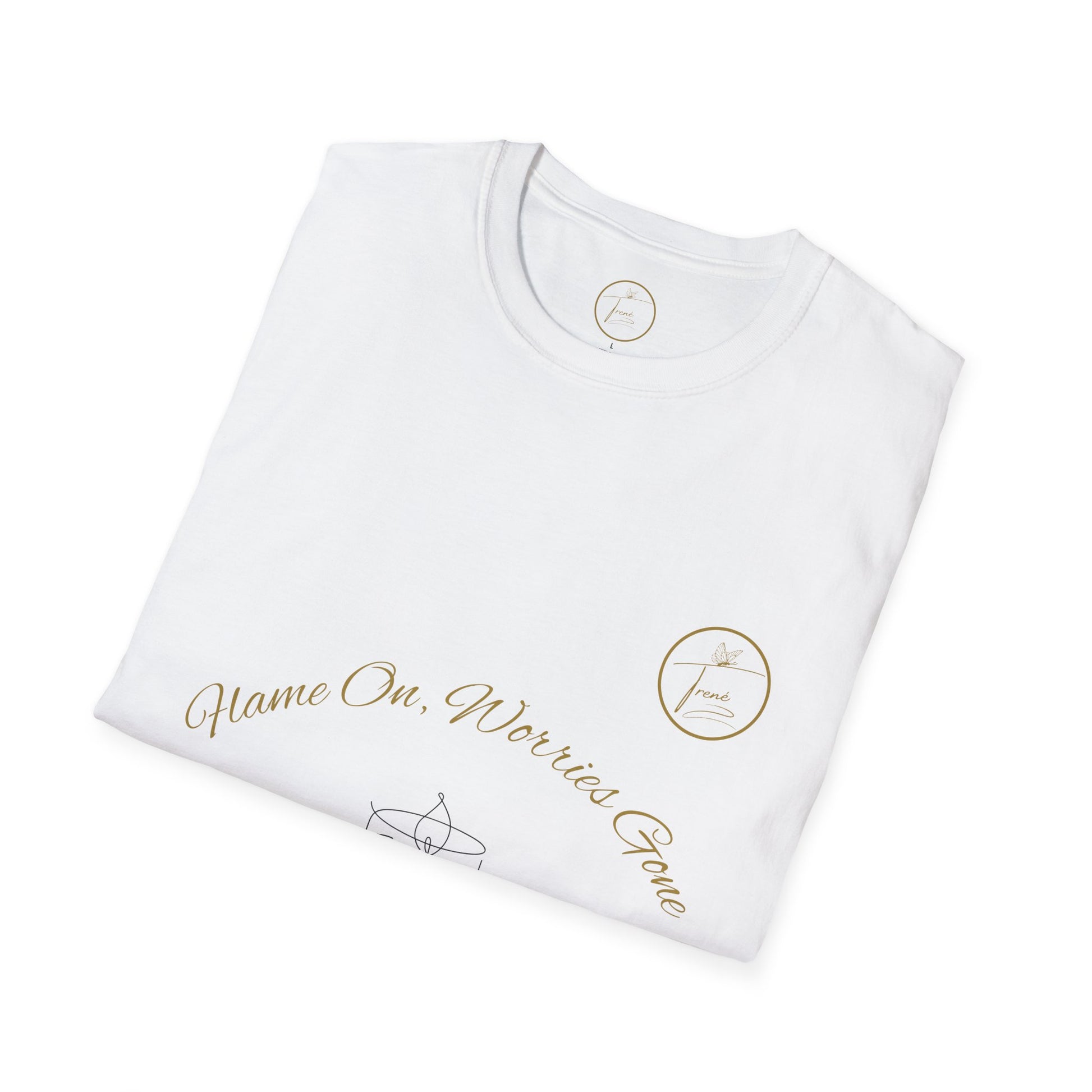 Unisex Softstyle T-Shirt - "Flame On, Worries Gone"